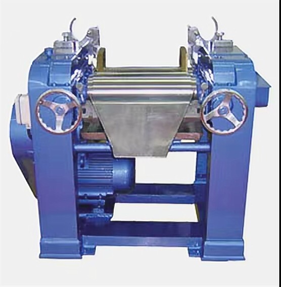 三輥研磨機(jī)適用膏體或高粘度物料使用。該機(jī)通過(guò)水平的三根輥筒的表面相互擠壓,手動(dòng)式調(diào)節(jié)輥筒之間的間距,以不同速度的摩擦達(dá)到研磨效果??裳b有緊急制動(dòng)按鈕,防止落入異物導(dǎo)致的設(shè)備損壞。輥?zhàn)邮褂锰厥庥操|(zhì)合金澆鑄而成;也可以使用大理石材質(zhì)。傳動(dòng)采用鏈條傳動(dòng)、齒輪調(diào)輥。
